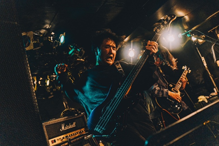 バンド活動です!激しさのあまり顔が波打っていますね、ウケる!パートはベースです🎸