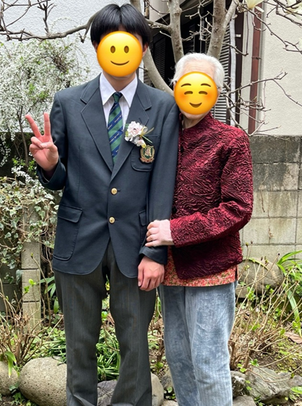 子供が三人いまして先日は三男の高校入学式でした。写真は三男と祖母です。