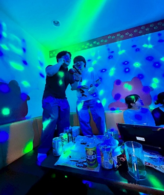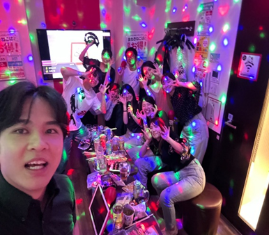 二次会で男2人一緒に歌っている様子です。北海道出身同士近しいものがあるようです🎤