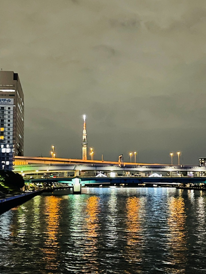この、スカイツリーが見える橋は江東区と中央区を結ぶ『永代橋』から見える夜景ですが、